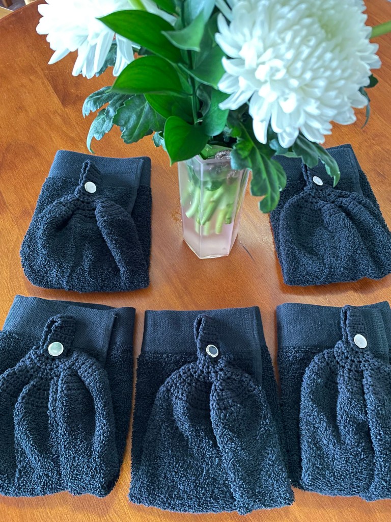 We are often asked if we can make something special. This week we have been doing just that. Hanging towels are one of our best sellers and we recently sold out of our all our black ones. They are very popular for garages, workshops and male bathrooms. So we made five more this week for a customer.