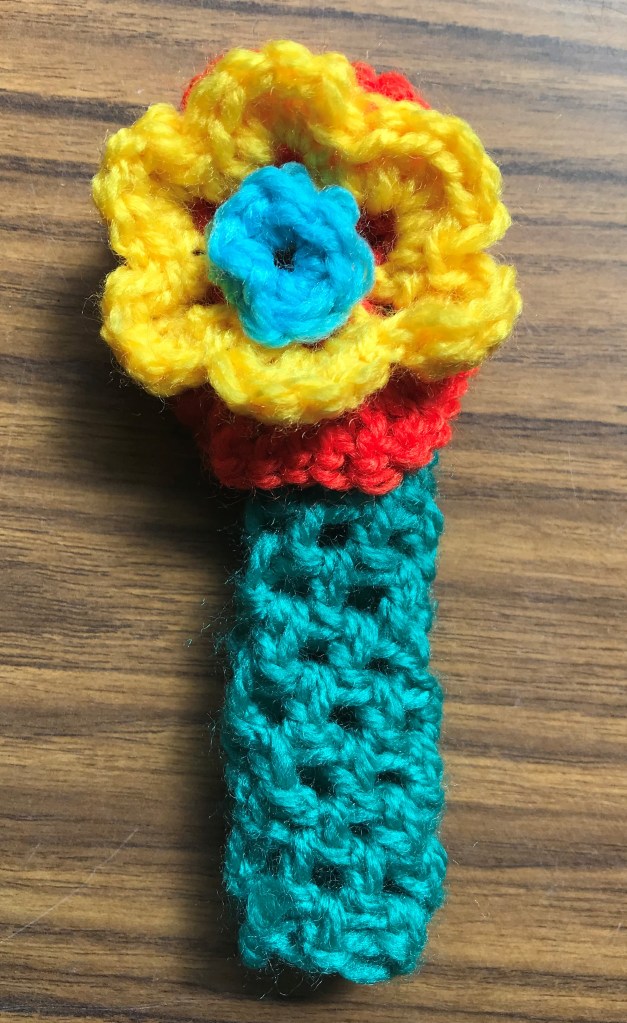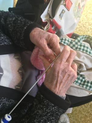 We mostly sit around and chat while our fingers are busy with crochet or knitting. We have a couple of beginners who are learning a lot from one of our very experienced crocheters.